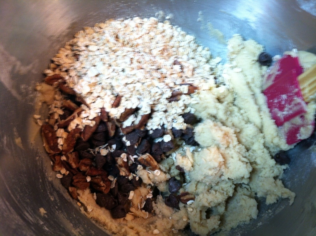 4. Add flour, baking soda and salt mixture and vanilla extract. Mix until incorporated. Don’t over mix.