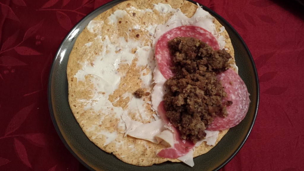 I made mine today with sandwich meats: oven roasted turkey, salami and prosciutto. I layered a small amount of mayonnaise for flavor. Rolled it up and had an amazing late lunch.