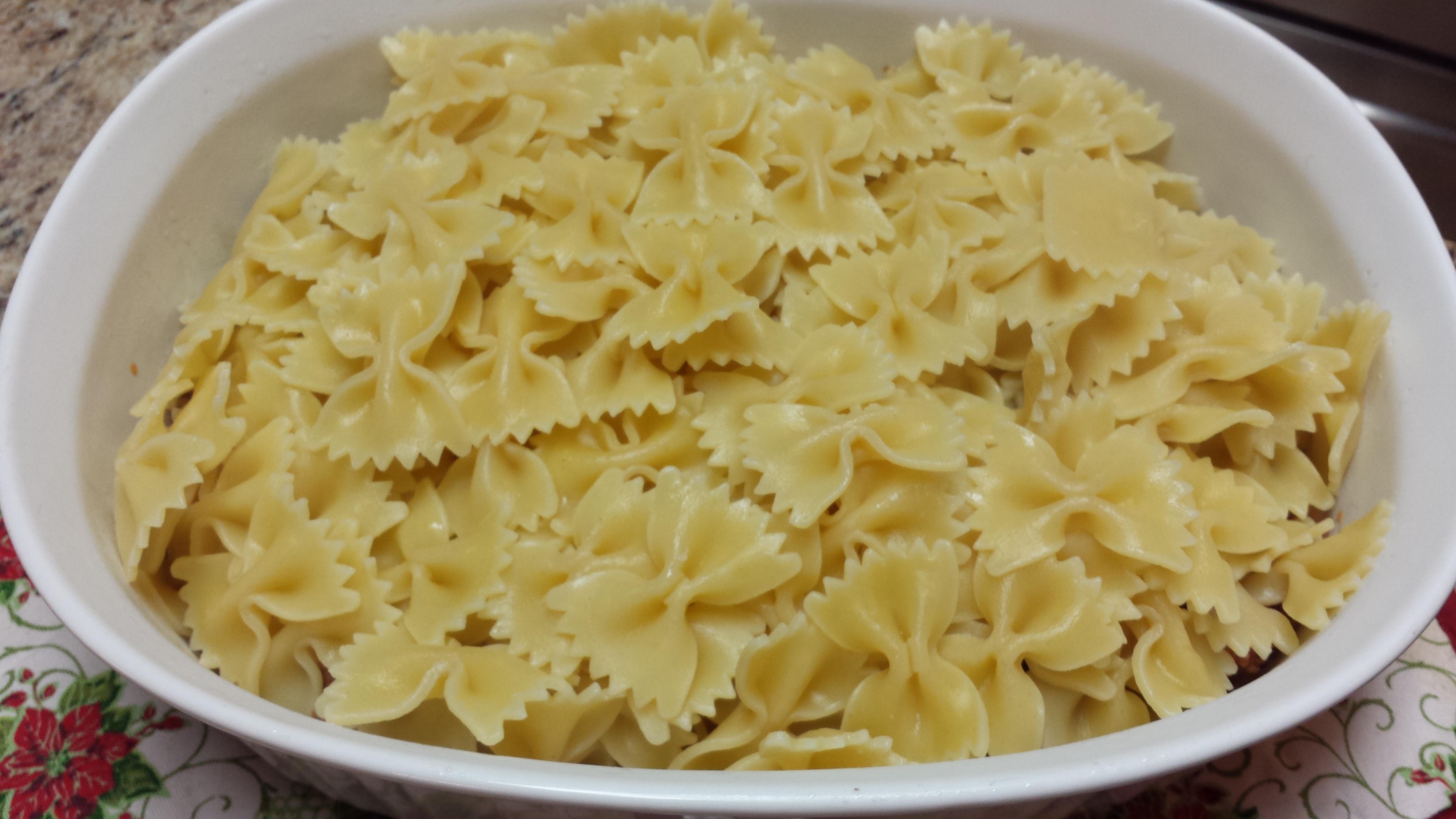 1- Cook farfalle pasta al dente as directed by the package instructions.