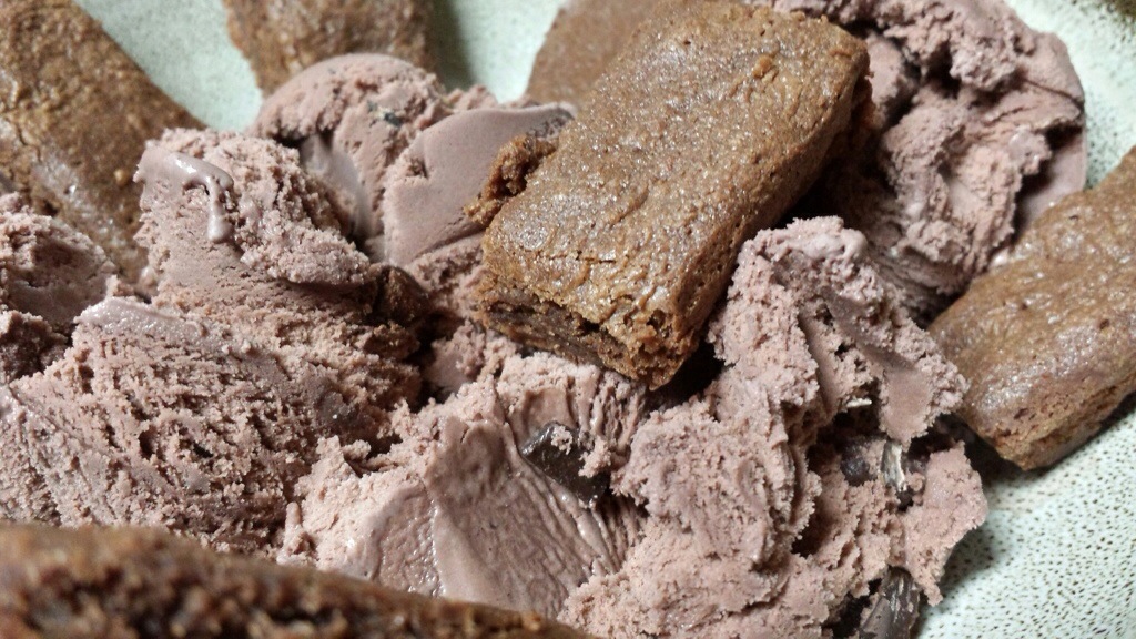 Some days call for nothing , but chocolate. And boy did I hear my name! 🙂 Just got some grocery store death by chocolate ice cream and paired it with my decadent brownies cut into bite sizes.