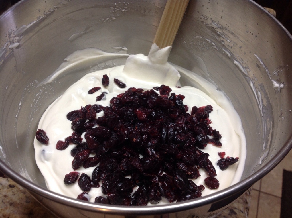 5- Add the dried cranberries and fold