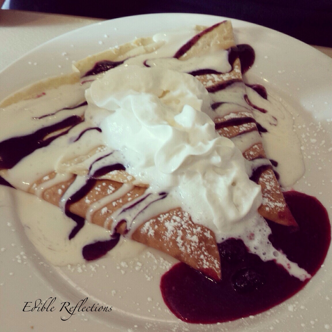 My friend had the Berry Bomb: a blast of seasonal berries and sweet cream cheese sauce. Topped with whipped cream and homemade berry sauce. Doesn’t this look just beautifully delicious?