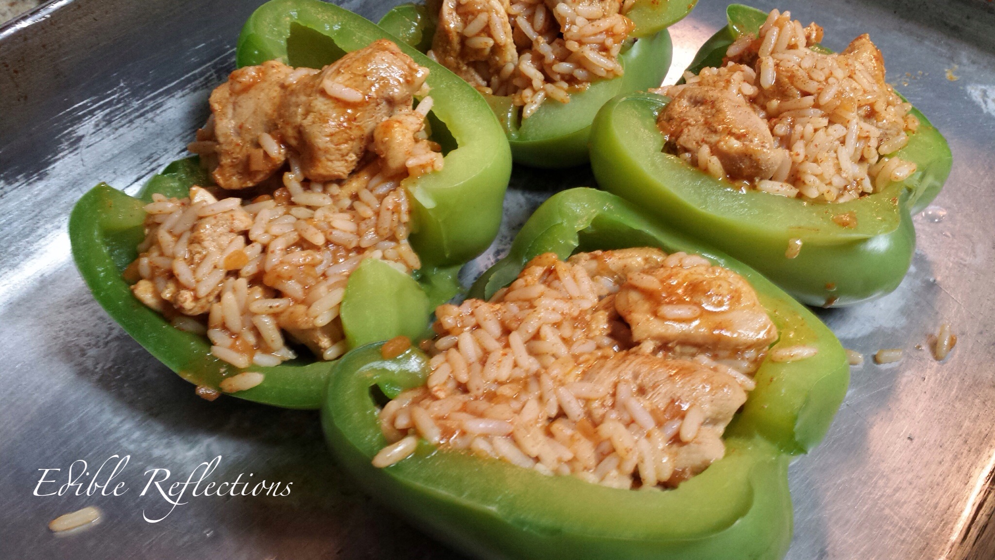 Chicken Taco Stuffed Peppers ready for the oven