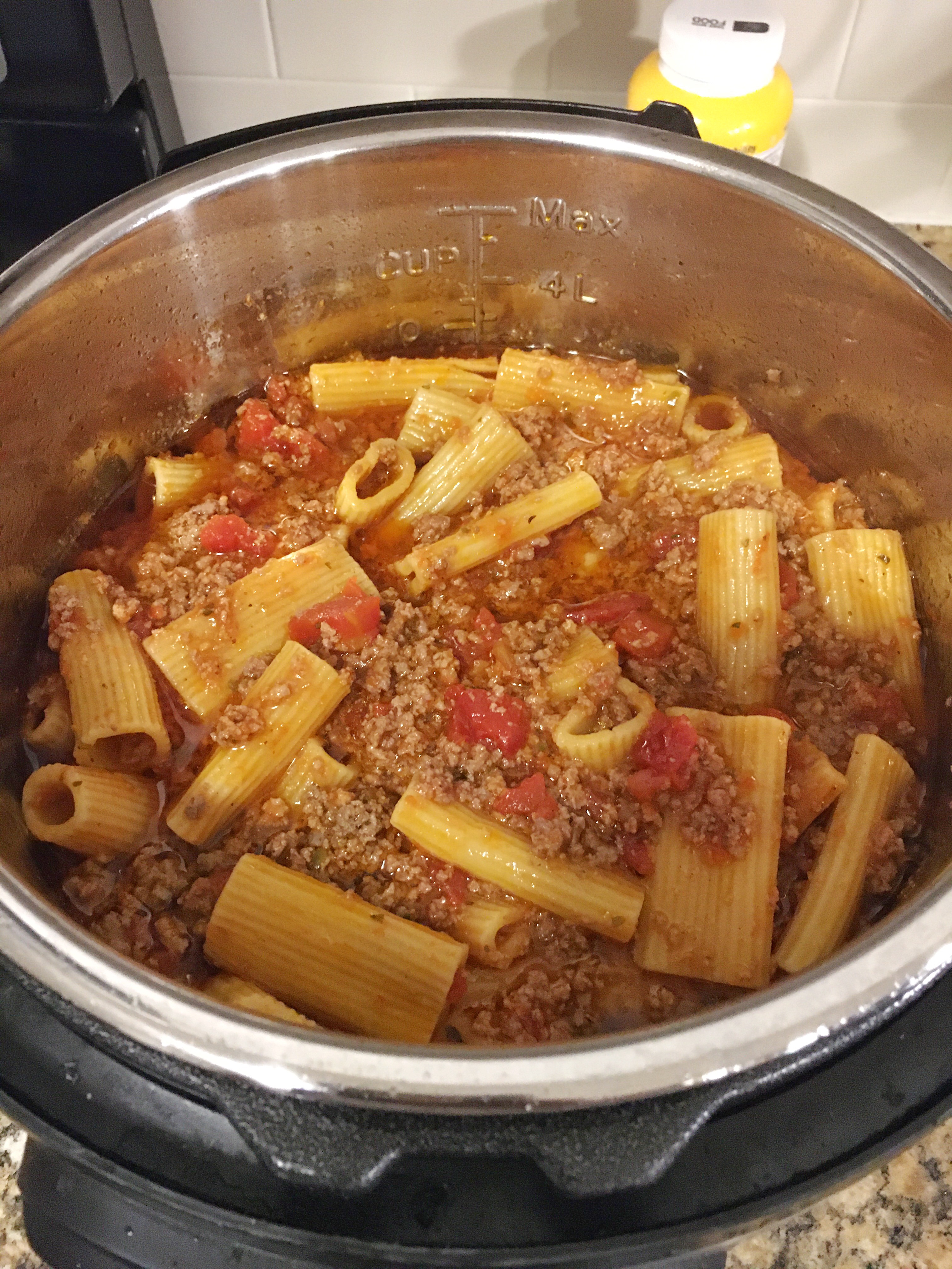 I recently got an Instant Pot Duo (6 quarts). I’m still trying new recipes and having a lot of fun making homemade meals. This rigatoni pasta and meat sauce is super quick, easy and delicious.