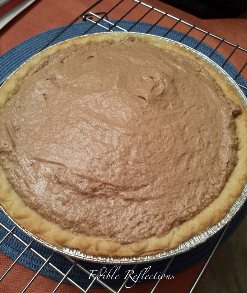 Chocolate Silk Pie ready for the refrigerator